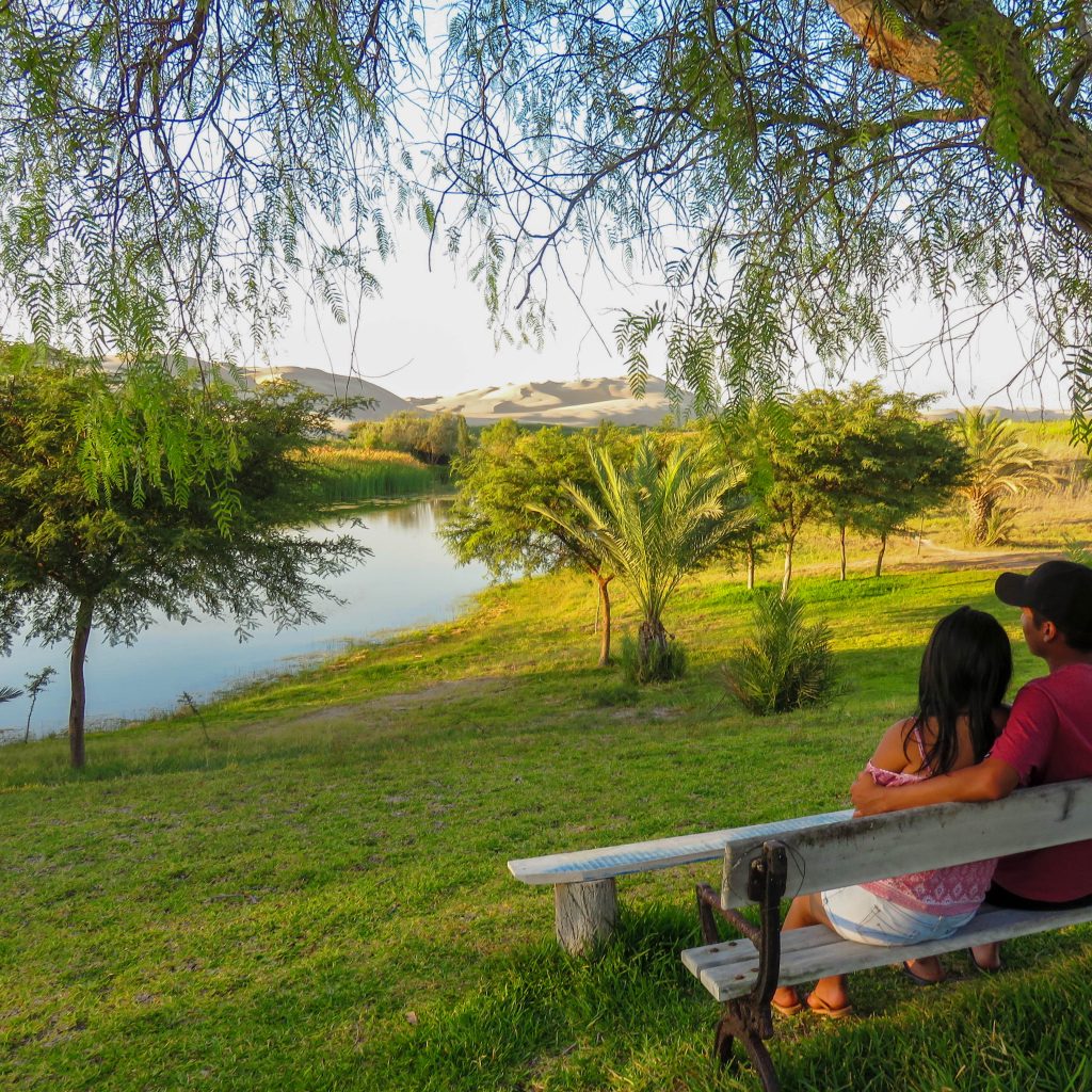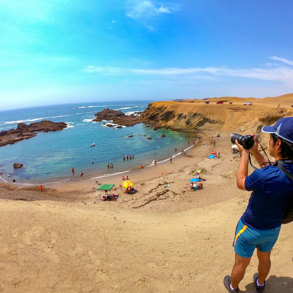La Costa peruana es moderadamente accidentada con muchas playas arenosas y acantilados, con presencia limitada de pequeñas bahías, ensenadas, penínsulas, puntas, morros, islas guaneras, albuferas y un oasis (Huacachina), además de esteros, deltas y manglares en el norte. El relieve está formado principalmente por llanuras desérticas clasificadas como pampas, tablazos, desiertos y depresiones, que se interrumpen por la presencia de quebradas y de 53 valles fértiles en donde está la mayor población y la mayor producción agrícola del país.